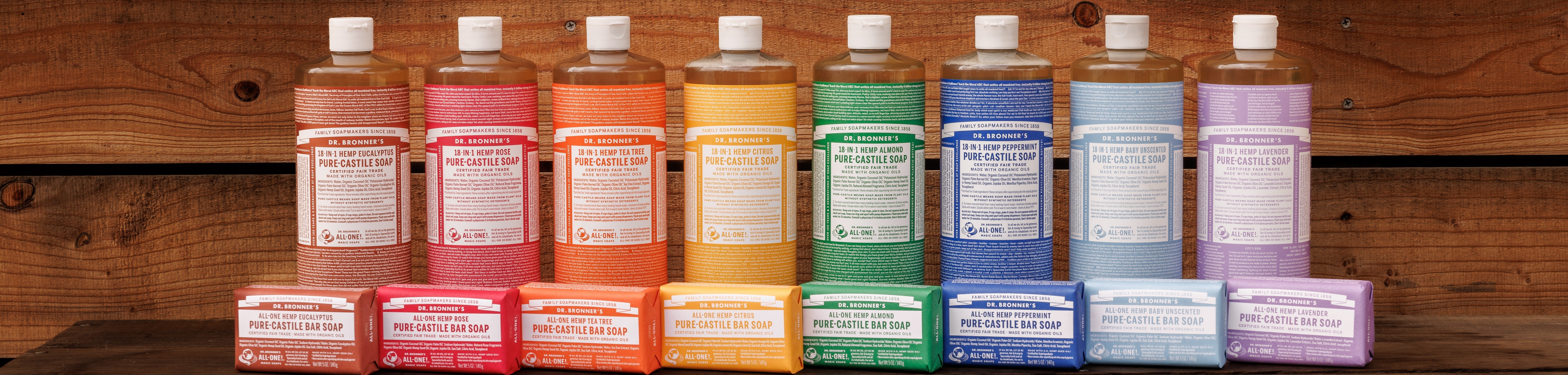 We’ll go ahead and state this upfront: for all body applications, from washing hair, face, body, or shaving, Dr. Bronner’s Castile Soap Bar and the Liquid Castile are interchangeable. That said, our liquid soaps carry a slightly stronger scent, and the bar soaps are a bit more moisturizing. In this guide, we’ll break down each difference so you can choose the right soap for you and all your cleaning needs!