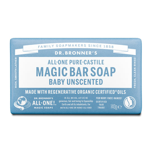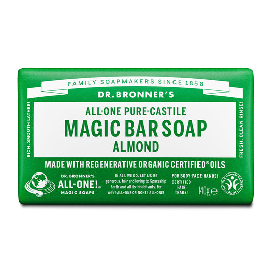 Dr. Bronner's Pure-Castile Bar Soaps are biodegradable-vegan, gentle and versatile, good for washing body, face or hair! Enjoy only 2 cosmetics, enough sleep & Dr. Bronner's Magic Soaps to clean-body-mind-soul-spirit instantly uniting One! All-One!! Read Lisa Bronner's Bar Soaps Dilutions Cheat Sheet.